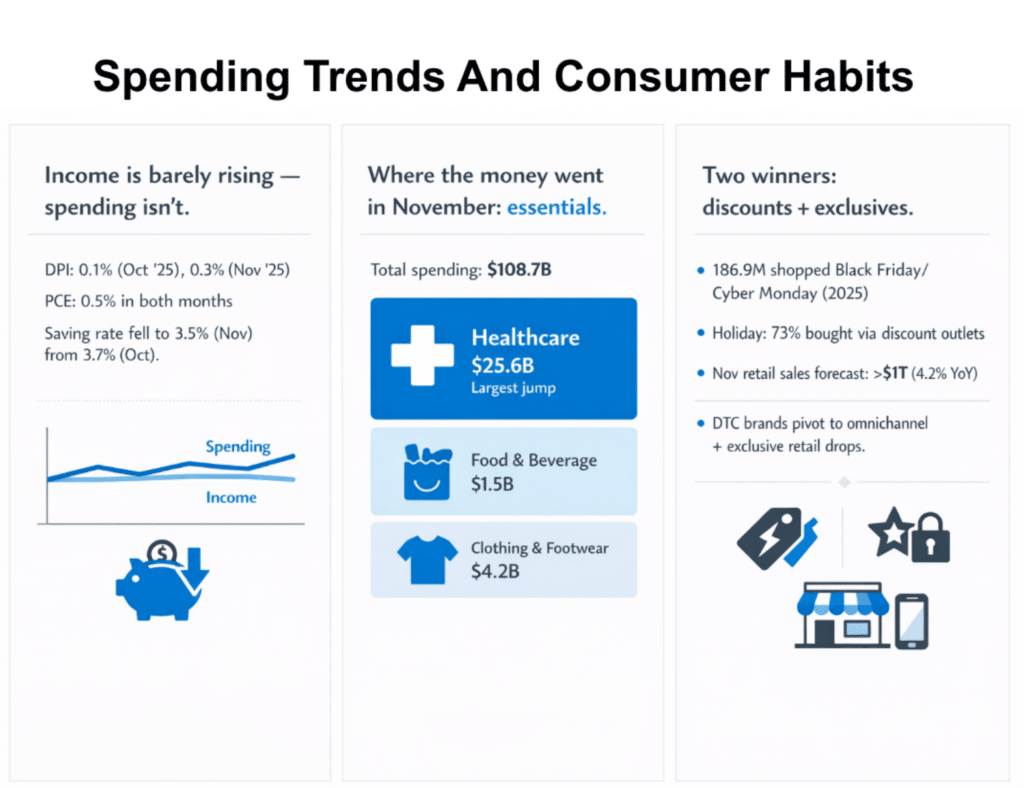 The definition of “essential spending” is undergoing a radical shift for households navigating the persistent gap between stagnant wages and rising costs. Consumer spending remains a vital barometer of economic health, yet recent data from the Bureau of Economic Analysis (BEA) reveals a fragile equilibrium: Disposable personal income rose by a mere 0.1% in October 2025, while the personal saving rate dipped to 3.5%.